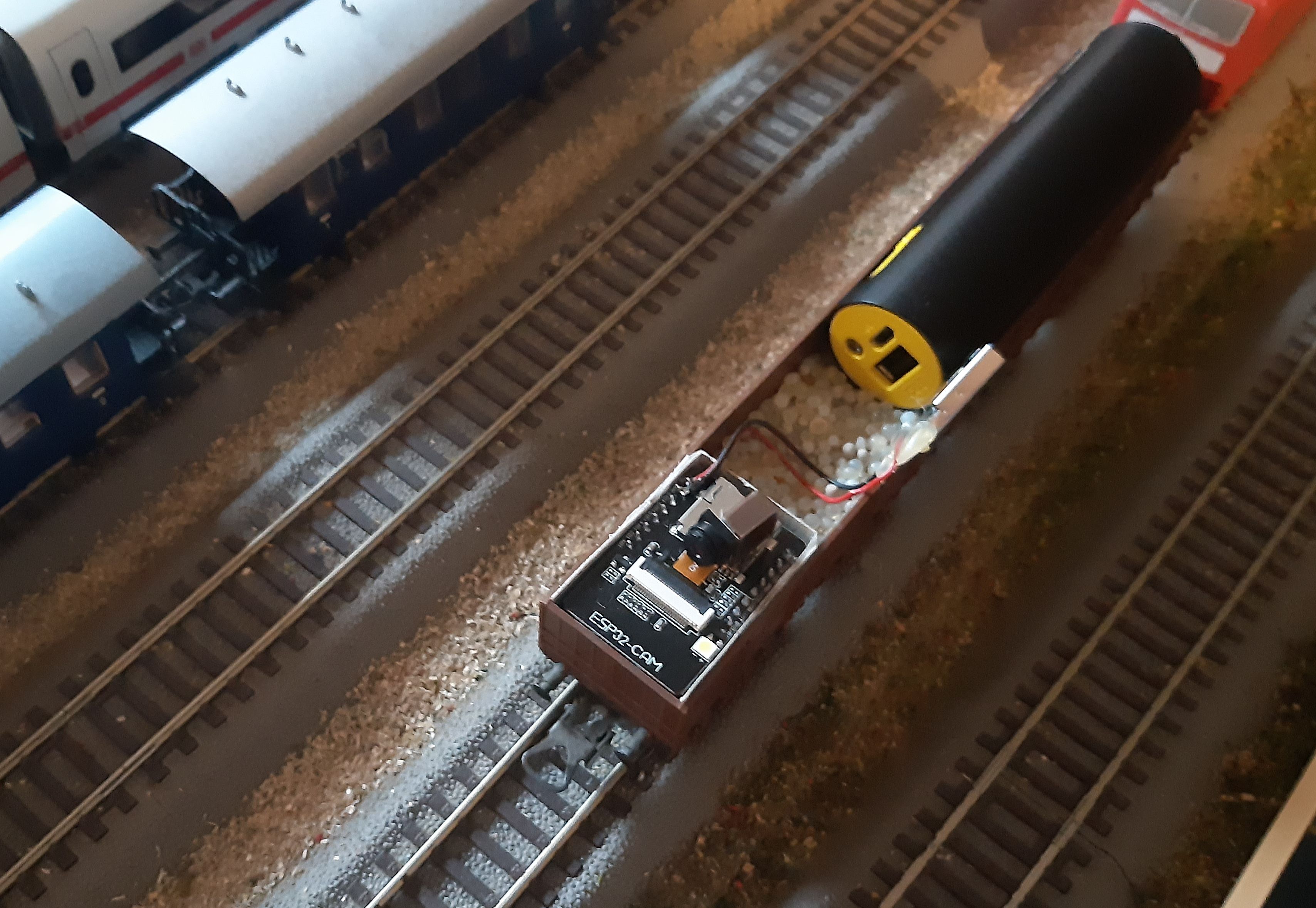 Zur Stromversorgung der ESP32-CAM verwende ich eine Powerbank, welche in einem Waggon liegt.